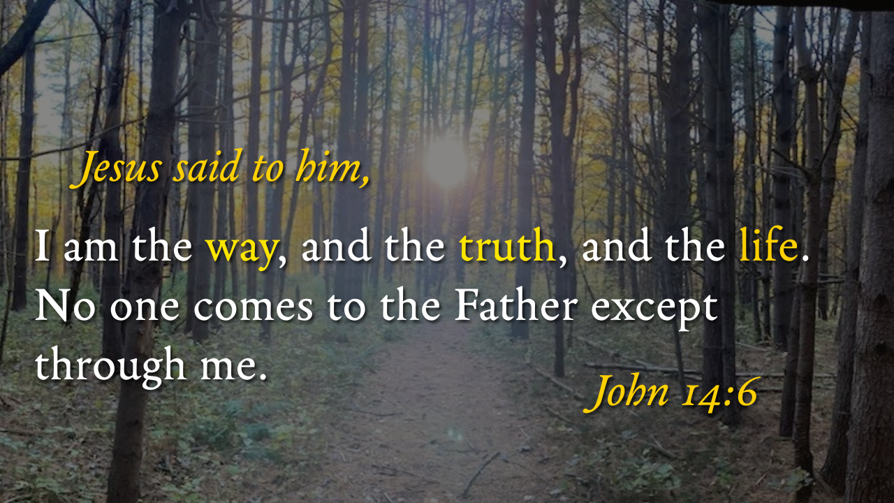 John 14:6 “Jesus said to him, “I am the way, and the truth, and the life. No one comes to the Father except through me.”