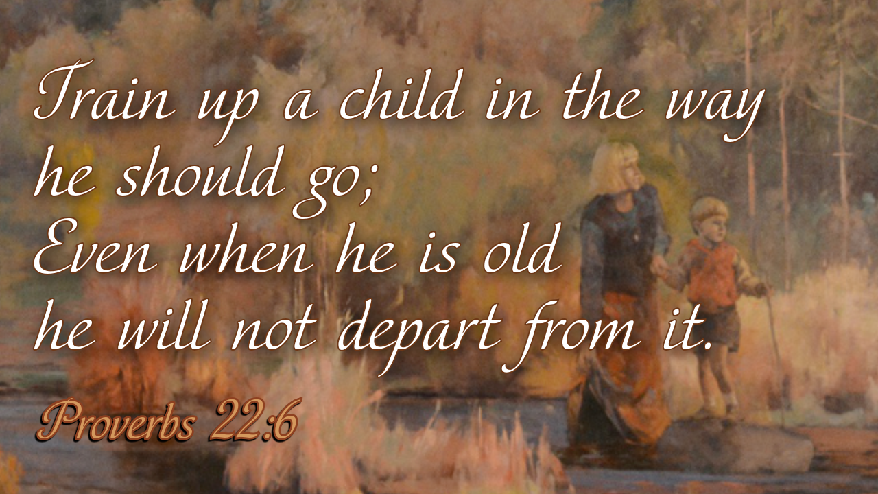 Proverbs 22:6 (NKJV) Train up a child in the way he should go, And when he is old he will not depart from it.